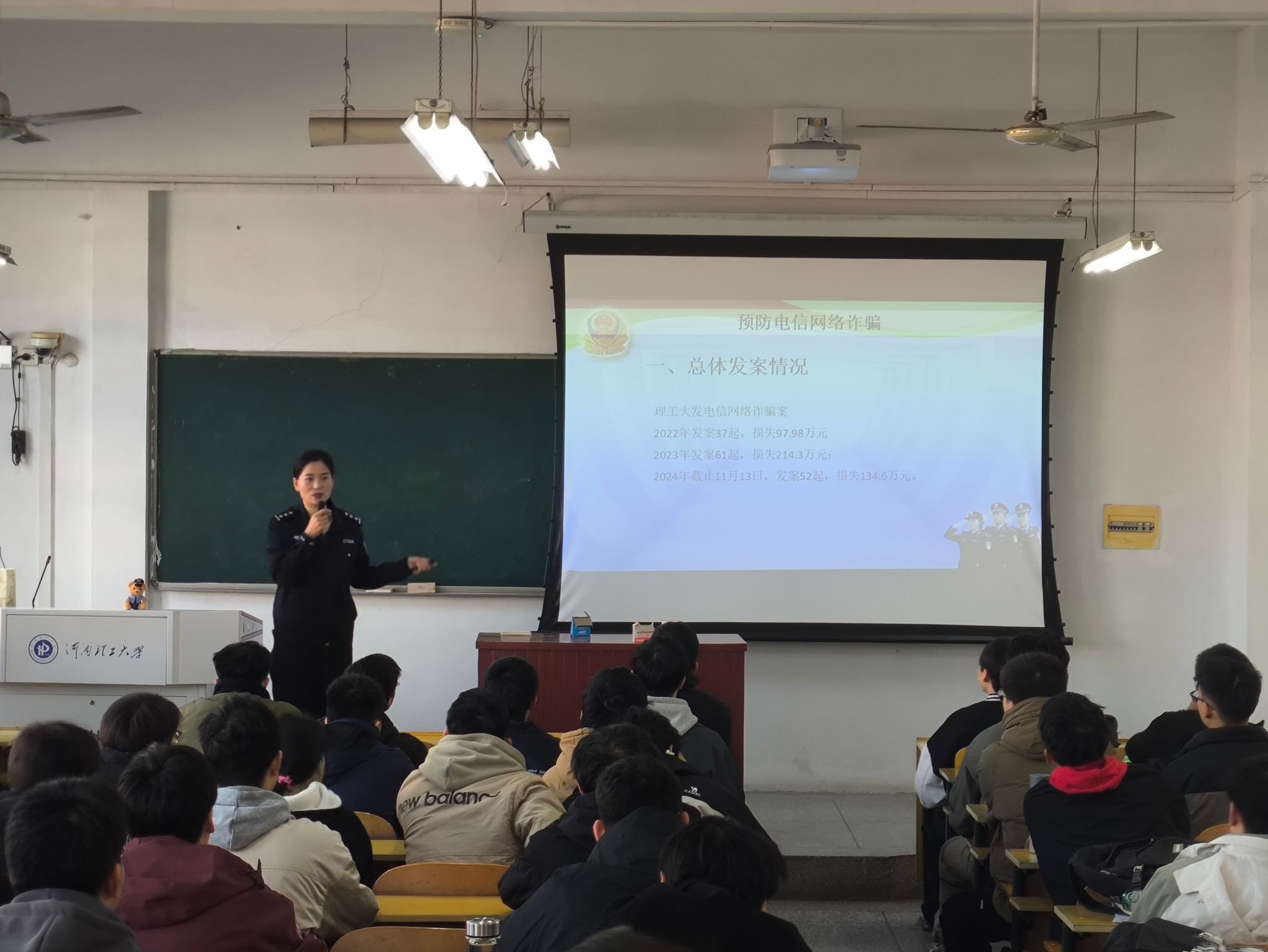 本次活动邀请到示范区苏警官到现场进行反诈知识的宣传和讲解,主要以线下开展主题宣讲会的形式进行,旨在通过集体学习的方式,提高同学们辨别诈骗和避免被诈骗的能力。活动现场,民警向学生们详细地讲述了电信诈骗的危害、特点及作案手法等,充分利用PPT和视频,绘声绘色的对常见的网络贷款诈骗、冒充购物客服退款诈骗,冒充熟人亲友类诈骗等诈骗方式做了详细的描述,并结合真实案例,以案说骗。向在场学生介绍了什么是“断卡行动”,进一步普及防范电信诈骗知识。在现场,学生和苏警官积极互动,争相回答反诈有关知识。许多同学表示,听完苏警官的反诈知识宣传,了解到了很多新的诈骗手段及其可能出现的危害,自己的反诈意识有了明显的提高。