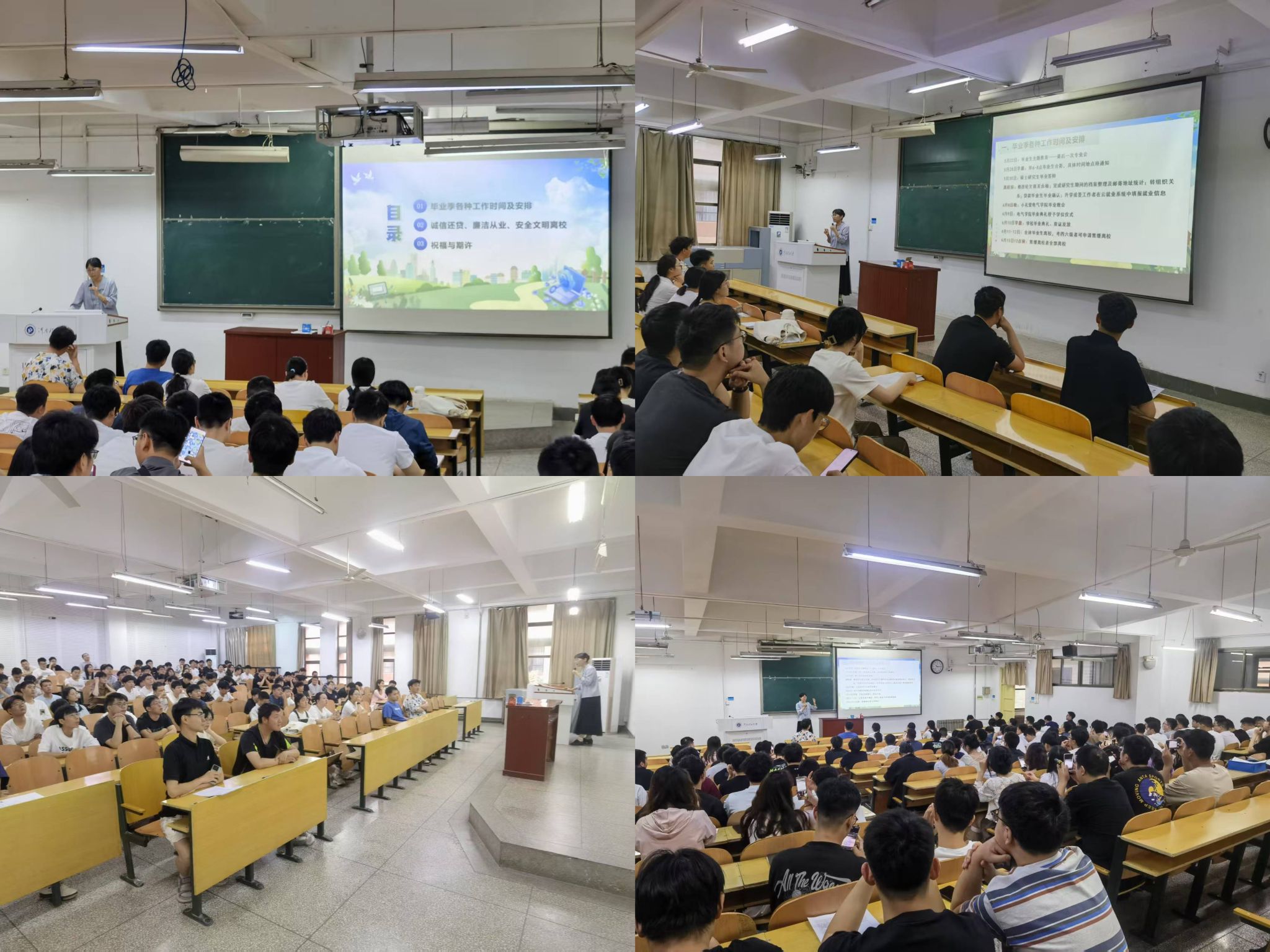 会议首先梳理了毕业季各项工作安排,重点强调了党团组织关系转接、人事档案整理与转递、就业信息填报等关键事项的办理流程和注意事项。特别强调同学们要高度重视党团关系转接和档案邮寄工作,确保组织关系不断档、人事档案不缺失,同时按要求及时准确上报就业信息。会议还就毕业合影、答辩安排、毕业晚会、学位授予等系列活动的整体安排作了部署。