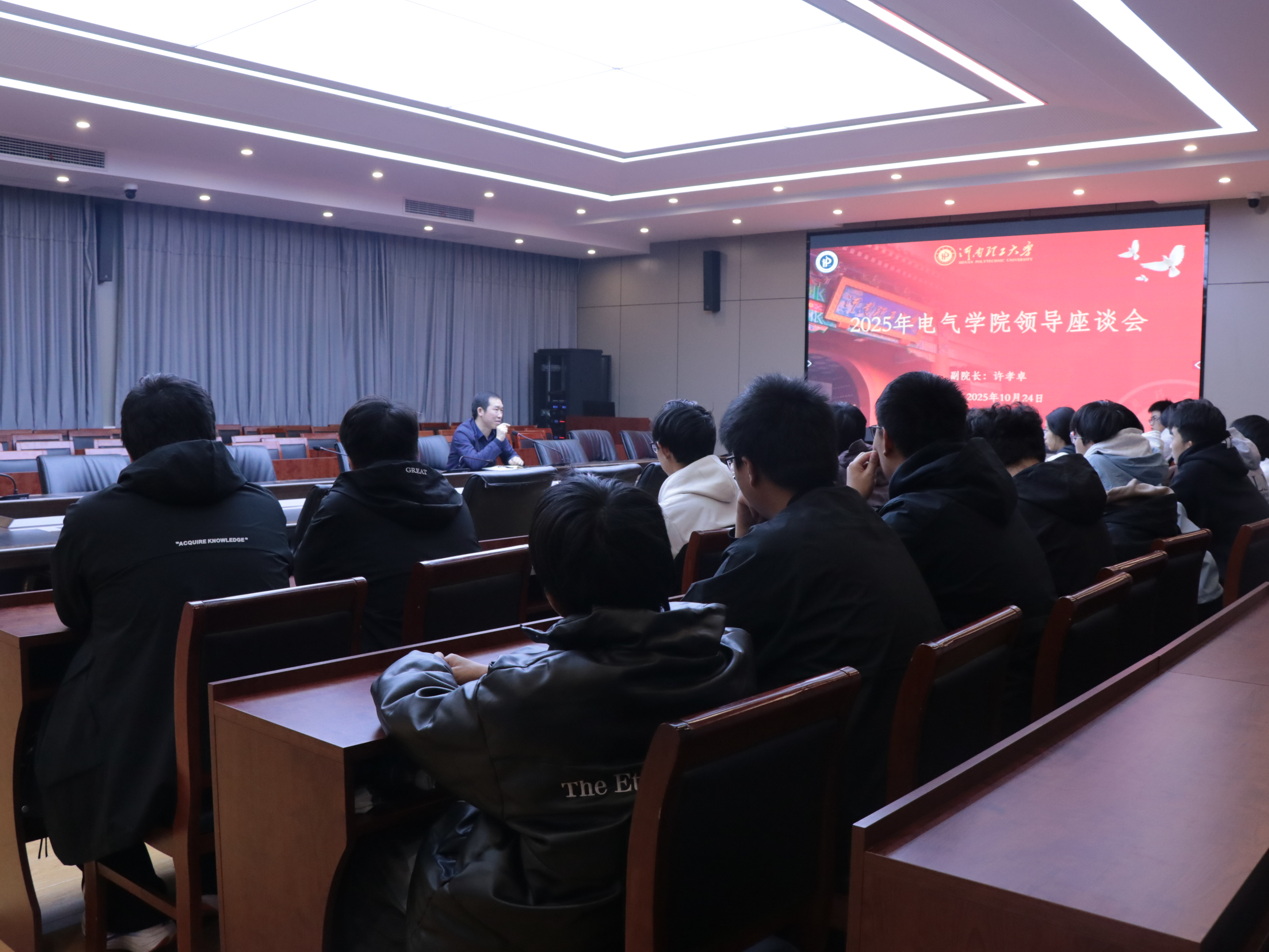 为助力新生快速适应大学生活,明确学习目标,共谋成长发展,10月24日下午,wepoker下载 副院长许孝卓于电气楼101会议室主持召开学生座谈会,同电气专业2506班全体同学展开了深入交流。