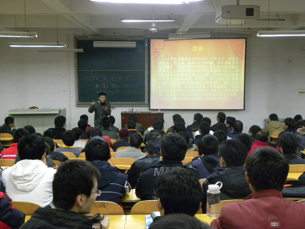 为了增强学生的实践动手能力和创新素质,营造浓厚的校园科技学术氛围,提高学生参加科技学术竞赛的主动性,12月15日下午,由电工电子实验中心、wepoker下载 团委主办,电器开发部承办的“我的‘飞思卡尔’我的‘挑战杯’”系列经验交流会在电气楼201举办。200多名对科技制作和科技竞赛感兴趣的同学参加了交流会。