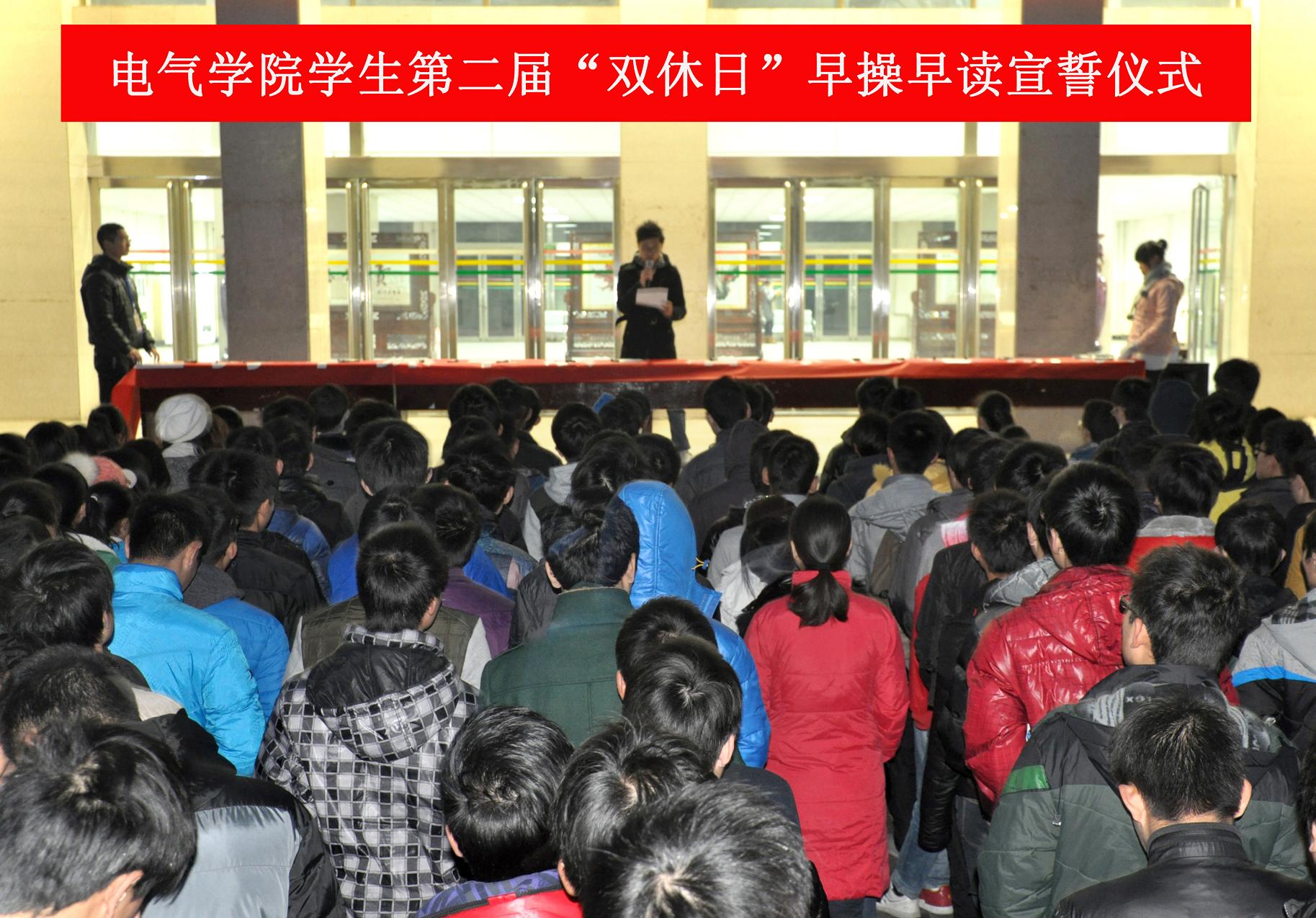 11月30日上午6:30,wepoker下载 2013级学生自发组织的第二届“双休日”早操早读宣誓仪式在三号教学楼前举行。该院2013级459名自愿参加“双休日”早操早读学生参加宣誓仪式。