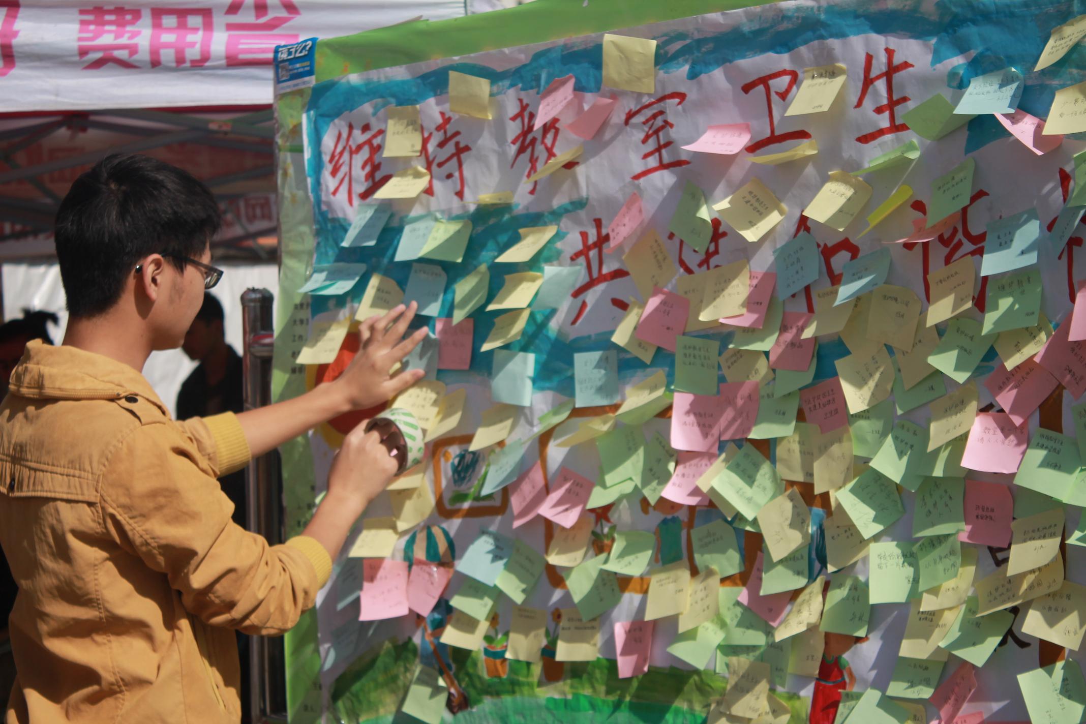 活动伊始,wepoker官网下载 的志愿者们积极主动地向同学们宣传本次活动的主题,并耐心讲解教室维洁对维护校园与自身形象的重要性。活动开展不久便吸引了大多同学的关注并得到了肯定,不少同学表示此次宣传活动的主题反应了他们内心的真实想法,承诺会努力保持教室整洁,不留下废弃物,为营造洁净的教室献出自己的力量,并且在宣传板上贴上了带有自己口号的便利贴——“保持教室卫生是我们义不容辞的责任”、“一屋不扫,何以扫天下”等标语,还在宣传横幅上郑重签下了自己的名字。本次活动开展顺利,现场气氛热烈,得到了同学们的一致好评。最终同学们合影留念,并将条幅挂于公告栏与电气楼大厅,引导同学们积极保持教室卫生。
