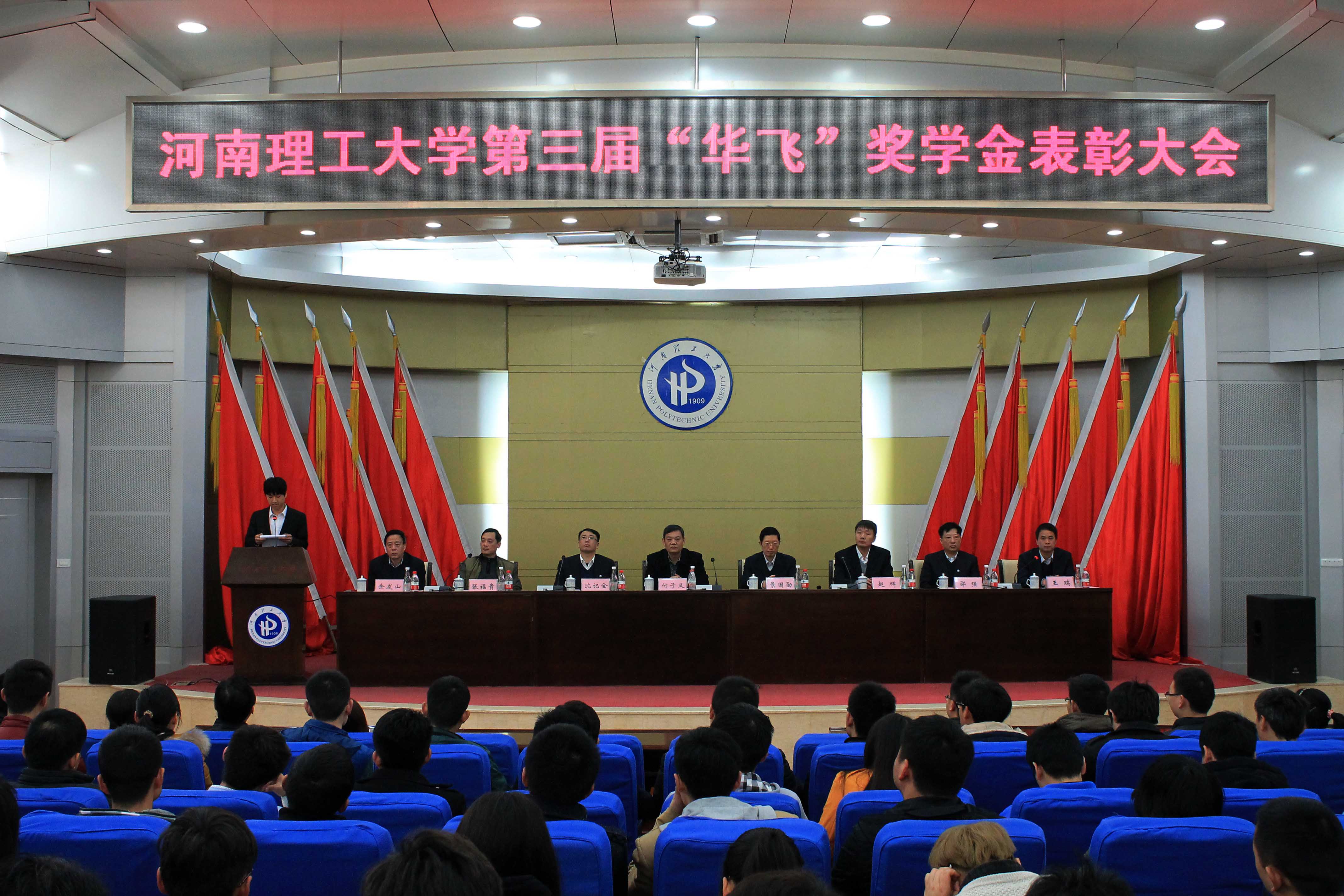 3月21日上午,河南理工大学第三届“华飞奖学金”表彰大会在圆形报告厅隆重举行。副校长景国勋,华飞电器股份有限公司总经理赵辉、总工程师张福贵,教务处、学生处等相关职能部门负责人和近300名师生参加了此次颁奖典礼。颁奖典礼由wepoker下载 党委副书记王瑞主持。