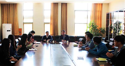 4月14日下午,校纪委书记张尚字与wepoker官网下载 电信13-1班3学生在电气楼215室进行了座谈。院党委副书记王瑞、13级辅导员皇甫彩虹陪同座谈。