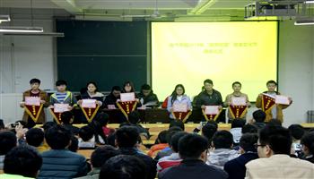 11月20日下午,wepoker官网下载 在电气楼303举办wepoker下载 2015年“菁菁校园”宿舍文化节表彰大会。会上,首先对各获奖寝室颁发锦旗和证书。随后标兵宿舍代表、特色宿舍代表以及优秀宿舍代表上台发言,他们借助PPT展现自己的宿舍特色,并回忆同宿舍人员相处的点滴及对大一生活的感悟。最后wepoker官网下载 学生会主席魏震宇从安全、文明、卫生以及友谊等方面向大家提出关于宿舍文化建设的建议。