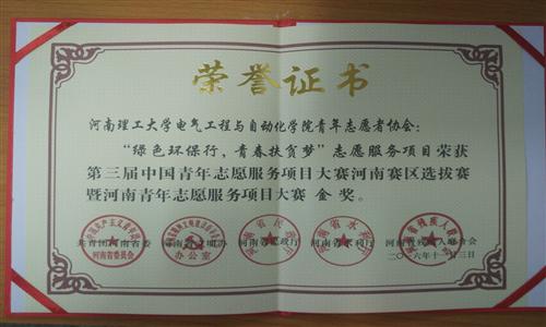 近日,第三届中国青年志愿服务项目大赛暨志愿服务宁波交流会在宁波举行。由河南理工大学wepoker下载 团委指导,wepoker下载 青年志愿者协会具体实施的志愿服务项目《绿色环保行,青春扶贫梦》获得河南省金奖,并从全国4049个项目中脱颖而出,荣获全国铜奖。