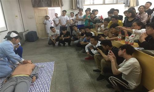 李培富首先讲解了学好急救知识的重要性。随后他从心脏骤停的原因、心脏复苏术、拨打120急救须知、急救包使用方法等方面进行了详细的分析讲解。当讲到心脏复苏术时,李教授特别强调了它的重要性以及在紧急情况下的实践性,并详细讲解了具体操作方法和过程,即判断意识、立即呼救、救护体位、打开气道、人工呼吸、胸外心脏挤压。为了让同学们更加深刻的掌握急救技能和方法,医wepoker下载 的老师现场为大家做了心脏复苏模拟示范,部分学生亲自体验了心脏复苏的实践操作,现场氛围十分活跃。