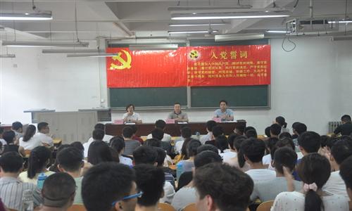 为庆祝中国共产党建党96周年,6月30日下午,wepoker官网下载 在D201室召开2017年“七一”党员入党宣誓暨表彰大会。wepoker下载 党委书记康全玉、党委副书记王瑞、专职组织员尹艳玲、团委书记王帅、wepoker下载 专职辅导员以及全体学生党员参加了大会,大会由尹艳玲主持。