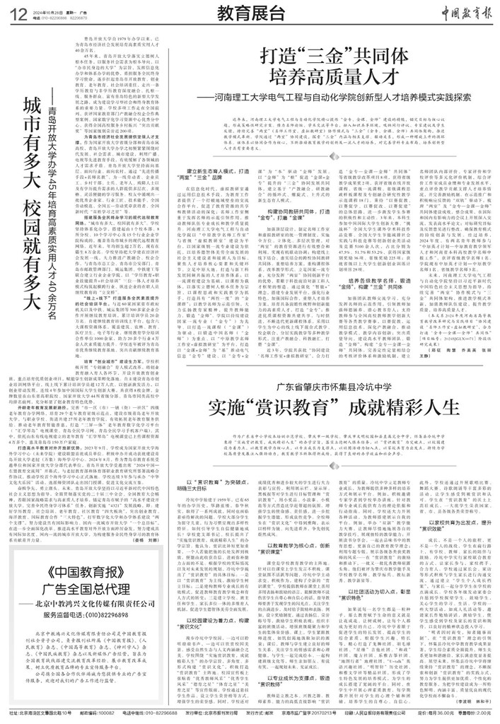 10月28日,《中国教育报》以《打造“三金”共同体,培养高质量人才》为题,展示wepoker官网下载 持续完善“两室”(名师工作室、虚拟教研室)协作模式与“三金”(金专、金课、金师)共同体架构,推进创新型人才培养模式实践探索成果,具体内容如下: